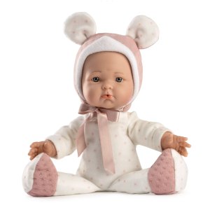 Ručně vyrobená španělská panenka miminko. Panenka má měkké látkové tělo, hlava a končetiny jsou vyrobené z kvalitního měkčeného vinylu. Velikost 36 cm. Baleno v dárkové krabici. Doporučený věk od 3 let.