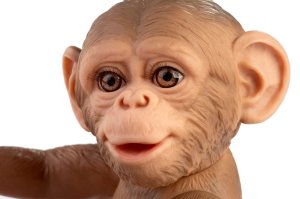 Veselé a roztomilé opičí miminko bez zvuku s vinylovým tělem s možností koupání, na kterém je zachycen věrohodně každý detail tohoto zvířecího mláďátka včetně různých záhybů, kromě pohlaví. Opičku lze koupat, ale je potřeba dát pozor, aby se jí nenamočily řasy. Odlepené řasy nejsou pak důvodem k reklamaci. Ruce a nohy jsou k tělu přichycené kloubem. Opičí miminko je polohovací a může i sedět nebo se dá pověsit za ruce nebo nohy. Dudlík v balení slouží pouze jako doplněk. Velikost 32 cm. Ručně vyrobeno ve Španělsku, baleno v dárkové krabici. Doporučený věk od 3 let.
