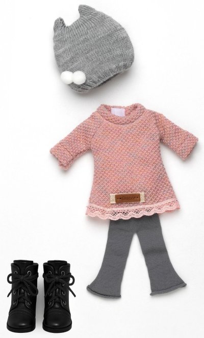 4dílný set: 3 kusy oblečení a botičky pro panenku Penelope velikosti 34 cm.