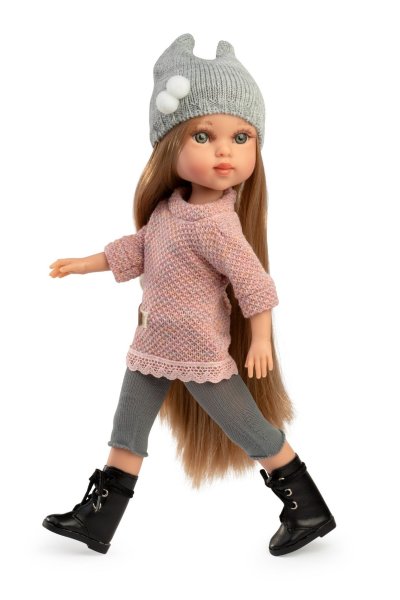 4dílný set: 3 kusy oblečení a botičky pro panenku Penelope velikosti 34 cm. Vyrobeno ručně ve Španělsku, baleno v igelitovém obalu na kartonové podložce. Doporučený věk od 3 let.
