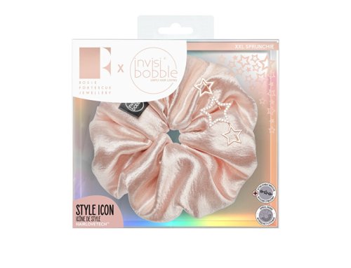 Gumička Sprunchie v sobě ukrývá spirálovitou gumičku Invisibobble Original, která zabraňuje bolestem hlavy. Součástí balení je hvězdicová brož, kterou lze umístit kdekoliv na gumičku. Jedinečná kolekce vlasových doplňků invisibobble, která vznikla ve spolupráci s designérkou šperků Rosie Fortescue. Gumička je ideální pro sepnutí vlasů, které netahá ani netlačí.