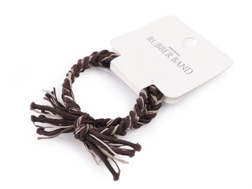 Gumičky do vlasů se střapatými konci vás potěší svým zajímavým designem. Jsou spletené z několika tenčích, barevně ladících gumiček do copánku. Využijete je na silné i tenké copy, efektně ozdobí účes. Díky spletení jsou velice pevné. [Můžete je nosit i jako náramky.] Vnitřní průměr gumičky volně položené je cca 3,5 cm, maximální délka obvodu po roztažení je 26 cm. Gumičky jsou zavěšené na kartě, která má otvor na zavěšení na prodejní stojan. Na jedné kartě jsou 2 gumičky.