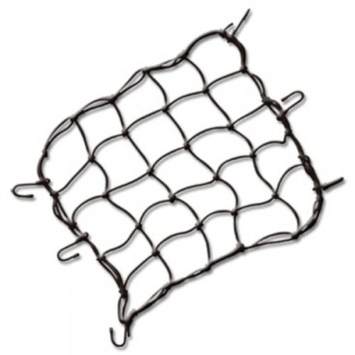 Elastická nylonová síť na košík či nosič je vybavena odolnými háčky pro snadné a bezpečné zajištění nákladu.