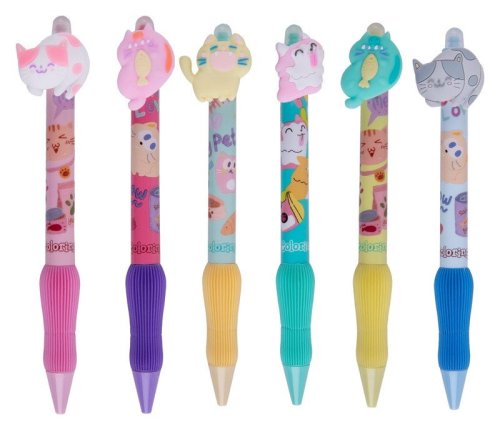 Konec chybám a škrtání v sešitech. Prostě je vymaž a přepiš. Pevná pryž na konci pera a jedinečné složení inkoustu zaručuje jednoduché a opakované gumování. K dispozici náhradní náplň.brbrVeselá gumovatelná pera, které zaženou nudu v každé školní lavici. Roztoč kočku a sleduj kolikrát se otočí dokola. Barevně sladěné tělo a na dotek příjemný pogumovaný grip, zaručí pohodlné a radostné psaní.