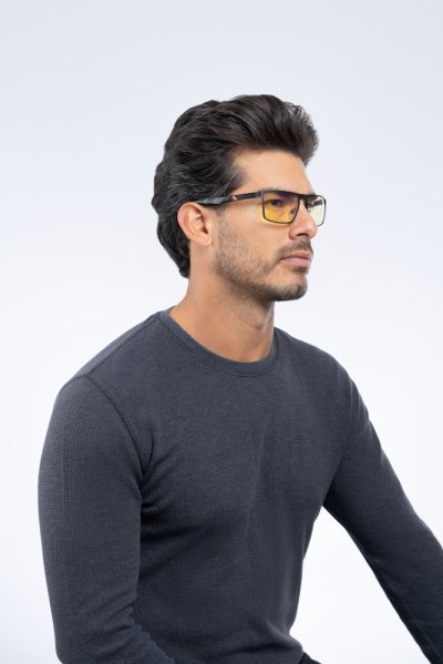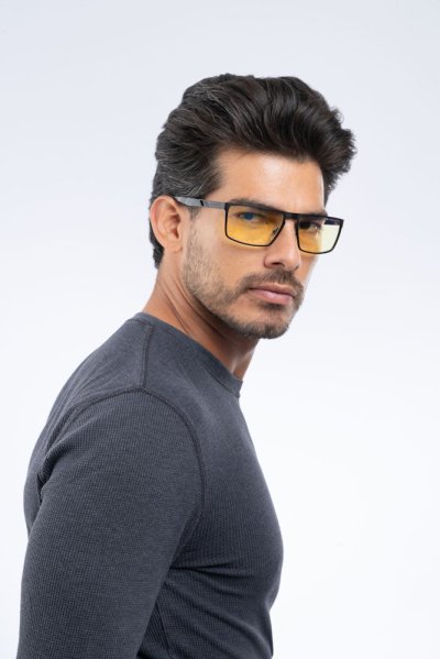Kancelářské brýle s jantarovými skly a antireflexní vrstvou, určené zejména pro dlouhou práci na počítači. Blokují 65 % modrého světla a 100 % ultrafialového záření, díky čemu minimalizují zatížení očí a celkovou únavu. Konstrukce rámu z acetátu a nerezové oceli zajišťuje nadčasový dojem.