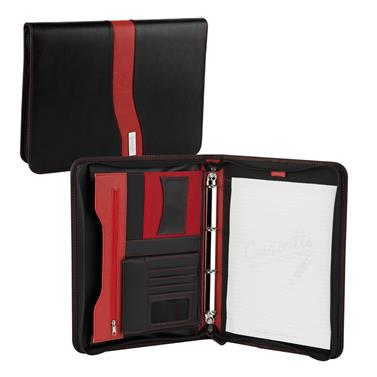 Tato diplomatka formátu A4 nabízí bohaté vybavení pro dokonalý přehled a organizaci dokumentů. Vnitřní prostor obsahuje 4kroužkový pořadač, který udrží vaše důležité papíry v pořádku. K tomu nechybí místo pro blok (blok je součástí balení), dvě velké kapsy na dokumenty a několik kapes pro vizitky, karty nebo drobnosti. Praktická kapsa na zip a kapsa na CD zajišťují bezpečné uložení vašich cenností.
