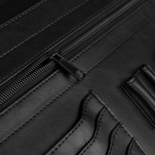 Vyrobená z odolné ekologické kůže v nadčasové černé barvě, diplomatka Guriatti MODERN vypadá vždy profesionálně. Zapínání na dva zipy zajišťuje bezpečnost uložených věcí a snadnou manipulaci. Elegantní madlo usnadňuje přenášení a dodává celé diplomatce šmrnc elegantní tašky.