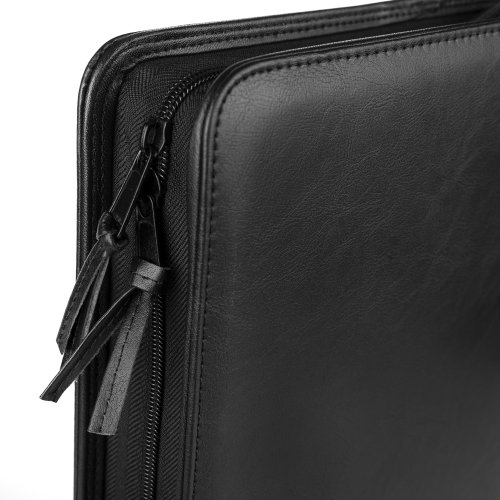 Tato diplomatka obsahuje 4kroužkový pořadač na dokumenty, který zajistí jejich přehledné a bezpečné uchycení. Místo pro blok (součástí balení) s pevným klipem vám umožní pohodlně zapisovat poznámky. Praktické kapsy na vizitky, telefon, drobné příslušenství a dokumenty vám poskytnou snadný přístup ke všemu důležitému. Navíc kapsa na zip ochrání cennosti či menší předměty.
