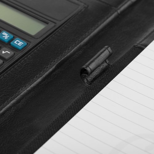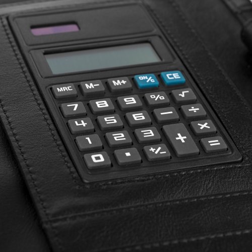 Tato diplomatka obsahuje vše, co potřebujete pro hladký průběh pracovního dne. Součástí je blok s pevným klipem na uchycení, takže si snadno zapíšete všechny poznámky. Integrovaná kalkulačka vám umožní rychle provádět výpočty. Nechybí ani kapsy na vizitky, kapsa s průhlednou fólií pro důležité poznámky nebo dokumenty, a další praktické přihrádky na drobnosti a dokumenty.