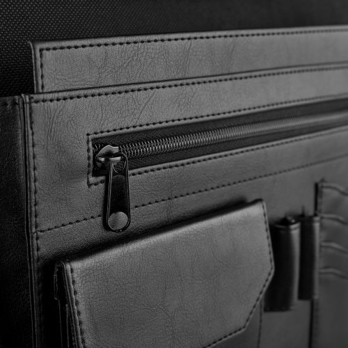 Vyrobená z ekologické kůže v nadčasové černé barvě, diplomatka POCKET kombinuje elegantní vzhled a snadnou údržbu. Zapínání na dvojitý zip zajišťuje maximální bezpečnost všech uložených dokumentů.