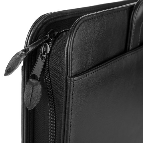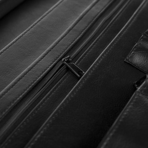 Diplomatka je vyrobena z kvalitní ekologické kůže v černé barvě. Materiál nejen dobře vypadá, ale je také snadno čistitelný. Zapínání na zip zajišťuje bezpečné uložení všech vašich dokumentů a příslušenství.
