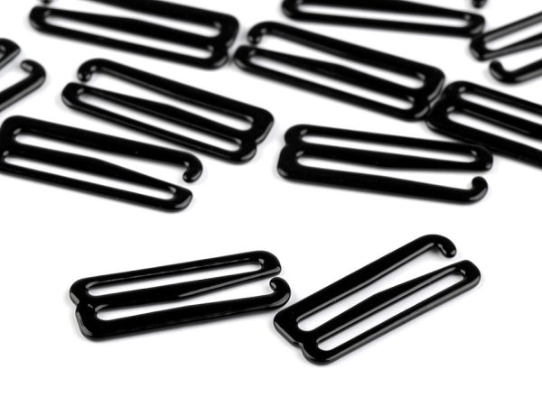 Háček a posunovač na prádlo šíře 25 mm kovový - černá háček (20 ks)