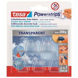 Háček lepicí, dekorační, trojhran, průhledný, Powerstrips, TESA