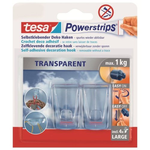 Háček lepicí, dekorační, velký, průhledný, Powerstrips, TESA