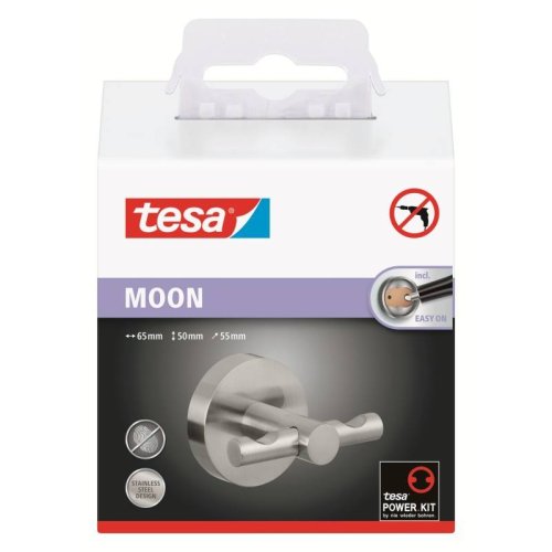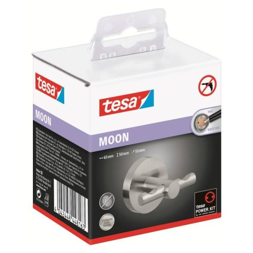 tesa® Moon Háček na oděvy stylový háček na ručníky nebo oděvy vzhled nerezové oceli povrch je voděodolný, zaručeně nerezavějící a má úpravu proti otiskům prstů technologie tesa® Power.Kit - univerzální …
