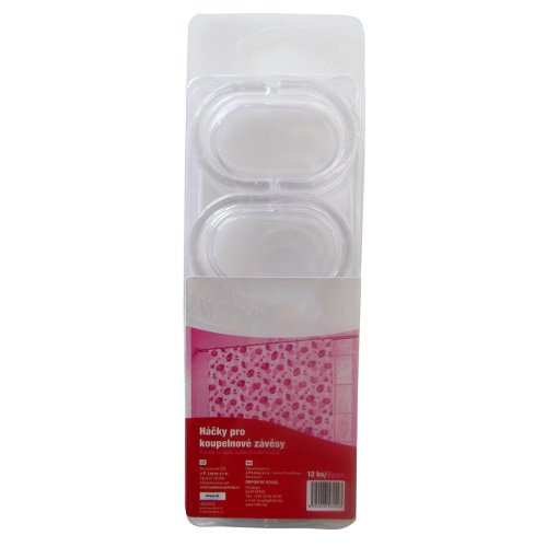 Háček pro koupelnový závěs, PH TRA (12 ks). materiál: plast barva: transparentní balení: 12 ks Náhraní háčky k závěsu do koupelny.