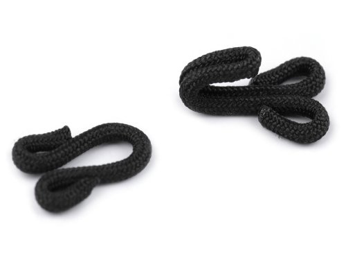 Kovový háček s očkem je potažený textilií. Používá se jako zapínání u oděvů, nejčastěji u vest nebo svetrů. Můžete ho využít také na tašky, kabelky apod. [Část s háčkem má délku 20 mm, část s očkem má délku 20 mm. Celková délka po zapnutí je 36 mm.]