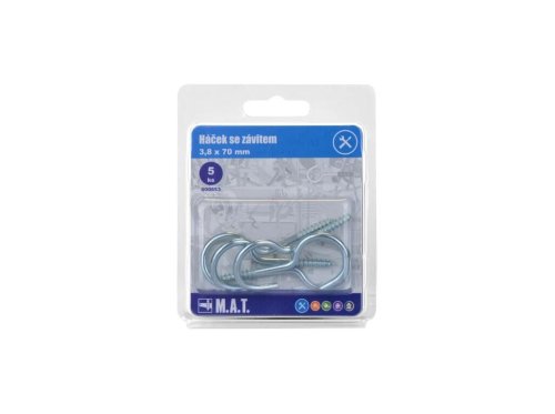 Háček se závitem 70 x 3,8 mm pro uchycení předmětů a břemen do různých materiálů.