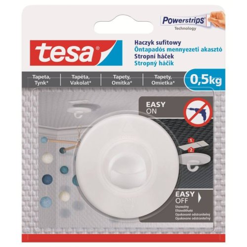 stropní háček Tesa® stropní háček na tapety a omítku s otočnou hlavou snadná montáž a demontáž: bez nářadí, odstranitelné beze stop opakovaně použitelné s novým lepicím proužkem osvědčená technologie …