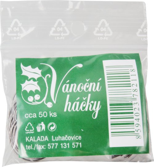 Vánoční závěsné háčky - železný lesk, délka 5 cm. Balení obsahuje 50 ks.