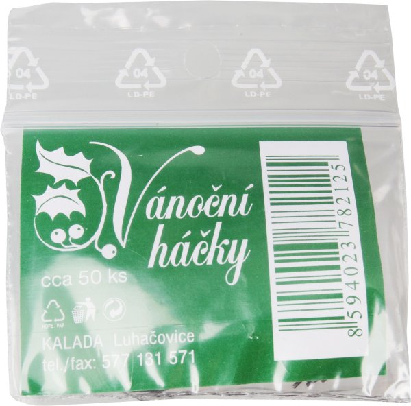 Vánoční závěsné háčky - železný lesk, délka 3,5 cm. Balení obsahuje 50 ks.