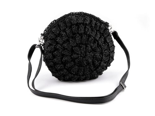 Kulatá háčkovaná kabelka je zajímavým doplňkem v boho stylu. Je vyrobená z papírových provázků z palmy rafie, díky tomu je lehká jako peříčko. Bude stylovým doplňkem vašeho letního nebo festivalového outfitu. Zavírá se na zip, uvnitř má podšívku. Součástí kabelky je nastavitelný popruh na karabiny, kabelku můžete nosit jako crossbody přes rameno či do kříže nebo jen tak v ruce.