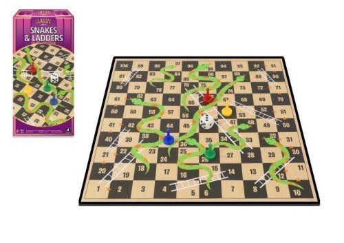 Tato hra byla populární ve starověké Indii pod názvy, v překladu jako Hra sebepoznání, Žebřík ke spáse nebo Kroky k nejvyššímu místu, které ukazují na váhu herního obsahu. Hry byly spojeny s tradiční hinduistickoufilozofií, kontrastující karmu a kamu, neboli osud a touhu. Mnohé z návrhů hrací desky byly plné symbolických obrázků, kde horní část představovala bohy a anděly, zatímco spodní část desky byla pokryta obrázky zvířat,květin a lidí. Žebříky představovaly ctnosti, jako štědrost, víru a pokoru, zatímco hadi představovali neřesti, jako je chtíč, hněv, vražda a krádež. Morální lekcí hry bylo, že člověk může dosáhnout spásy konáním dobra, alekonáním zla se znovu narodí jako nižší formy života. V současné době byla většina těžkopádných morálních lekcí nahrazena jednoduššími ilustracemi, nicméně podstata hry zůstává věrná historii – na různých políčkáchjsou žebříky, které hráče posouvají dále po herní desce, a hadi, kteří hráče stahují zpět. Hráč, který se jako první dostane na poslední pole, je prohlášen za vítěze!Obsah:4 hrací figurky1 kostka1 herní deska (rozkládací, rozměr po složení 29 x 29 cm)návod k použití (pro 2 – 4 hráče)Varování: Nevhodné pro děti do 3 letDoporučený věk: 6+