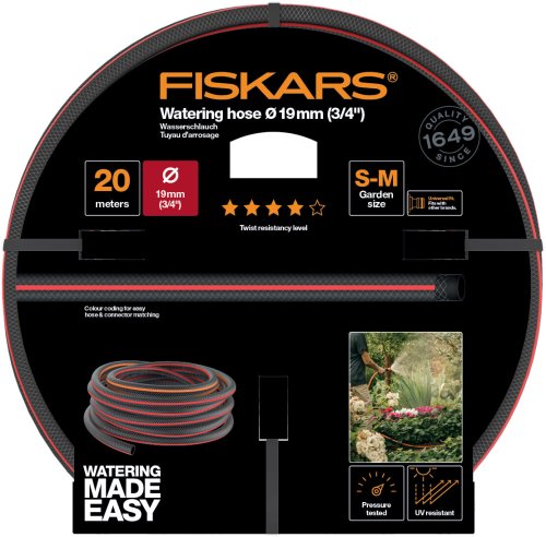 Snadno ovladatelná 3/4 hadice odolná proti zkroucení. Délka hadice: 20 m. Odolnost proti zkroucení úroveň 4. Ochrana proti UV záření. Neobsahuje ftaláty. Barevné označení pro snadný výběr vhodné hadice a konektoru. Výška: 39,5 cm, délka: 39,5 cm, šířka: 11,5 cm. Hmotnost: 4,7 kg.