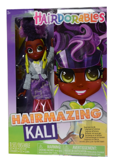 Objevte svět kouzelných youtuberek Hairdorables ze série 1! Hairdorables panenka je připravena na show. Otevřete balení s Kali a zjistěte, která další překvapení se v něm skrývají. Krabice, ve které je panenka uložena slouží po rozložení jako přehlídkové molo. Balení obsahuje: panenku Kali s oblečením a 6 překvapení - 1 pár bot, kartáč na vlasy a 4 další doplňky. Výška panenky: 26 cm