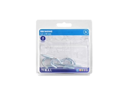 Hák lustrový 80 x 5,2 mm, lesk (4 ks). rozměry (D x pr.): 80 x 5,2 mm lesk balení: 4 ks Hák lustrový 80 x 5,2 mm slouží k upevnění lustru do různých materiálů.