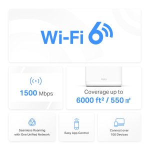 Halo H60X Systém AX1500 Whole Home Mesh WiFi 6 Funkce Dvoupásmová WiFi 6 rychlostí až 1500 Mbps *1201 Mbps na 5 GHz a 300 Mbps na 2,4 GHz.