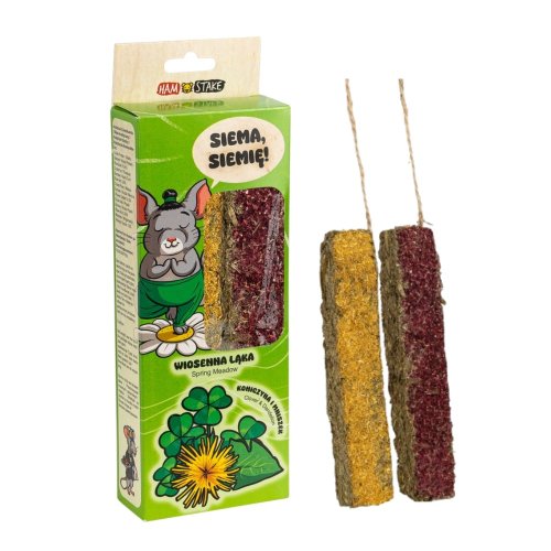 Ham Stake přírodní pamlsek pro hlodavce ve tvaru tyčinky na provázku s příchutí jarní louky.