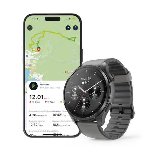 Hama 9000, smart hodinky, GPS, AMOLED 1,43", funkce telefonování, úložiště hudby, AI hlas. asistent