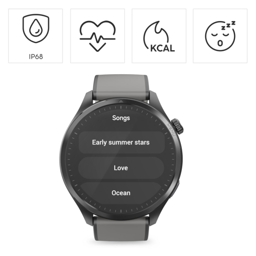 • možnost uložení hudby přímo v hodinkách; 50 skladeb ve formátu MP3 můžete poslouchat přes Bluetooth sluchátka i bez telefonu