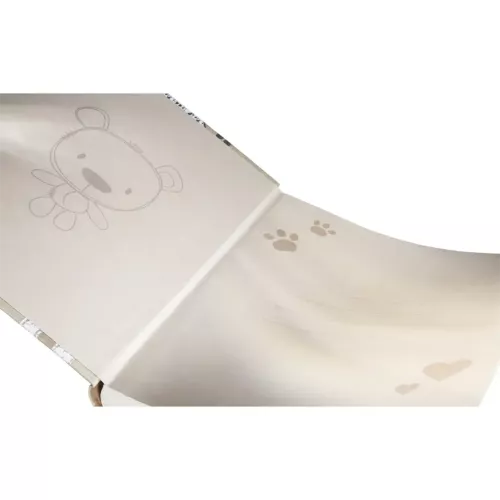 • tvrdé desky potažené tištěnou textilií s výšivkou medvídka