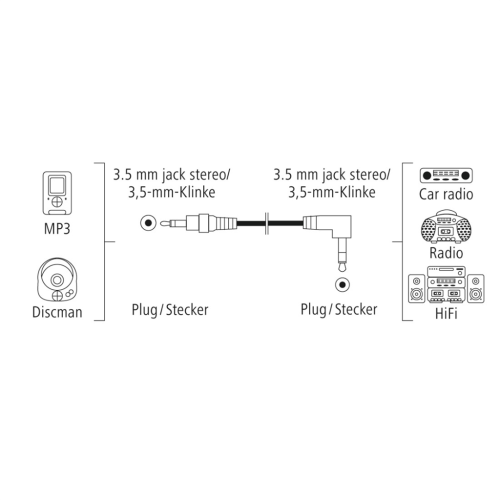 • jack 3,5 mm vidlice kolmá – jack 3,5 mm vidlice