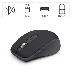 • 7tlačítková bezdrátová optická myš s volitelným připojením na tři zařízení: 1x bezdrátový USB přijímač a 2xBluetooth