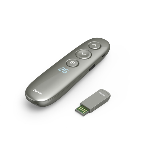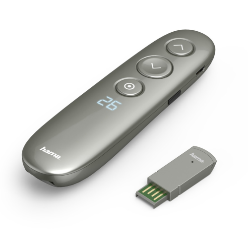 Hama bezdrátový ovladač prezentací s digitálními funkcemi pro rozšířené ovládání a podporu během prezentací, umožňuje ovládání dokumentů (listování/posouvání) MS Powerpoint a ostatních kancelářských …