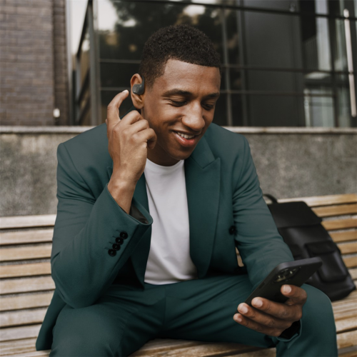 • zcela bezdrátová sluchátka s otevřenou konstrukcí a klipem za ucho