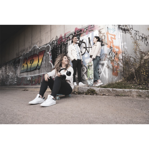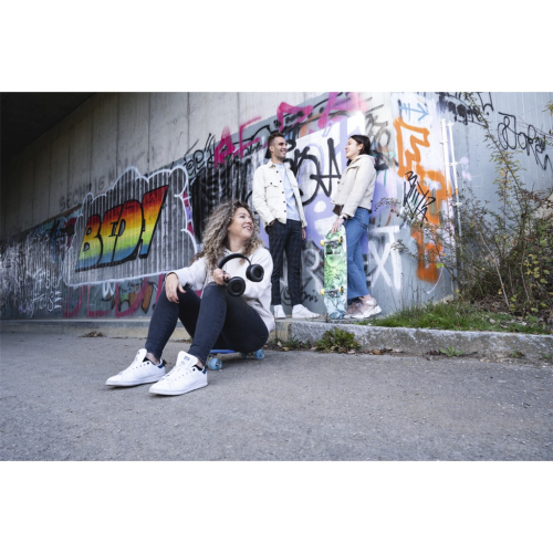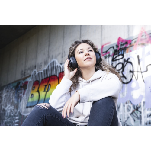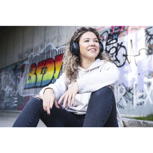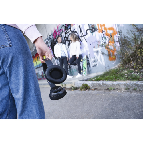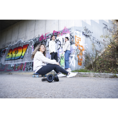 • pouhým otočením náušníků směrem ven změníte sluchátka na hlasitý reproduktor a můžete poslouchat hudbu společně s přáteli