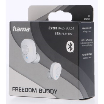 Hama Bluetooth sluchátka Freedom Buddy, špunty, nabíjecí pouzdro, bílá