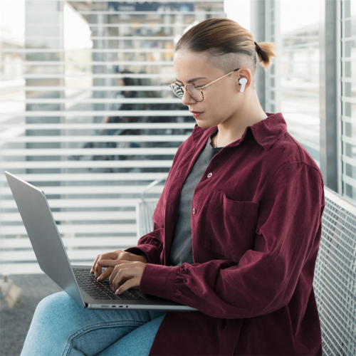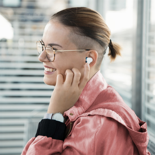 • zcela bezdrátová sluchátka do uší (true wireless) pro poslech hudby a telefonování přes Bluetooth