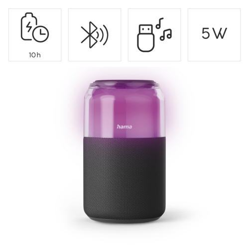Hama Can Speaker, Bluetooth reproduktor ve tvaru plechovky, 5 W, 4 světelné režimy