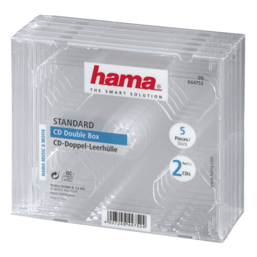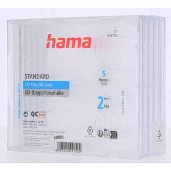 Hama CD Double box, standardní obal na 2 CD/DVD, průhledný, balení 5 ks (cena za balení)