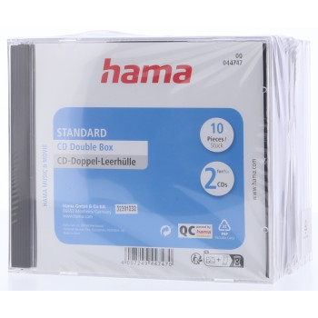 Hama CD Double box, standardní obal na 2 CD/DVD, průhledný/černý, balení 10 ks (cena za balení)