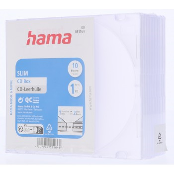 Hama CD Slim Box, obal na 1 cd/dvd, průhledný, balení 10 ks (cena za balení)