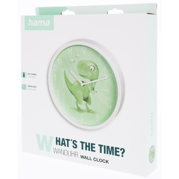 Hama Cebu, dětské nástěnné hodiny, průměr 25 cm, tichý chod, s dinosaurem