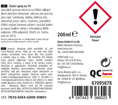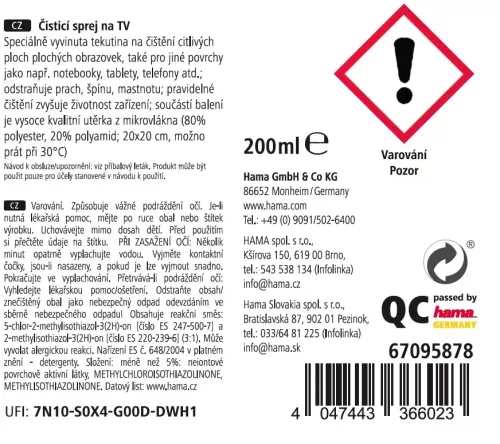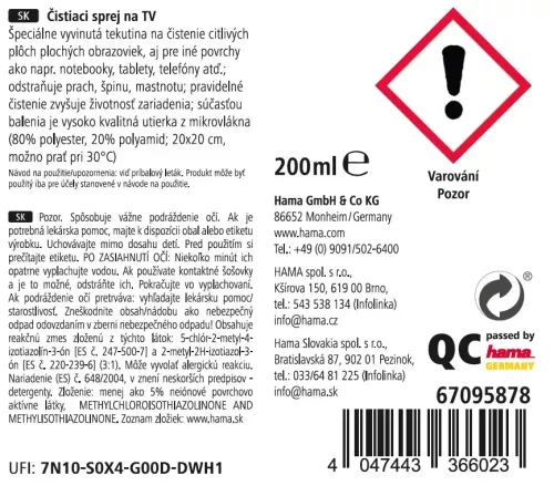 Hama čisticí sprej na TV, 200 ml, včetně utěrky