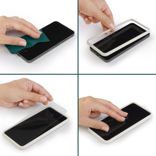 • snadná aplikace ve 3 krocích: vyčistěte displej telefonu, umístěte EcoFrame upevňovací pomůcku na displej a následně umístěte na vrch ochranné sklo