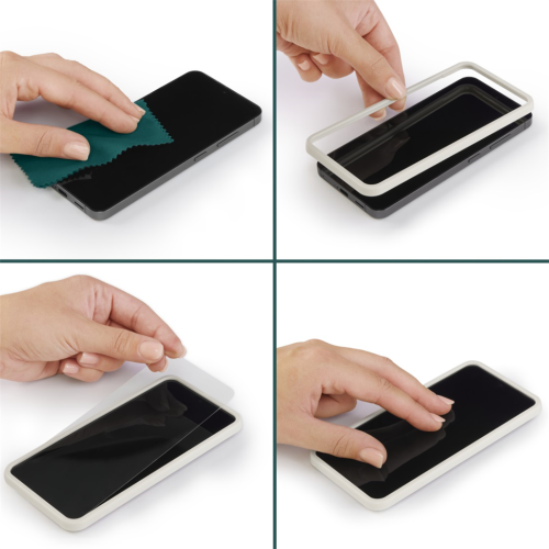 • snadná aplikace ve 3 krocích: vyčistěte displej telefonu, umístěte EcoFrame upevňovací pomůcku na displej a následně umístěte na vrch ochranné sklo